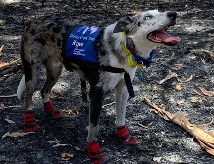 Chú chó dũng cảm này có tên Bear, nó được ca ngợi là một anh hùng vì đã giúp lính cứu hoả cứu những chú gấu túi bị thương và mồ côi mắc kẹt trong đám cháy rừng dữ đội tại nước Úc.