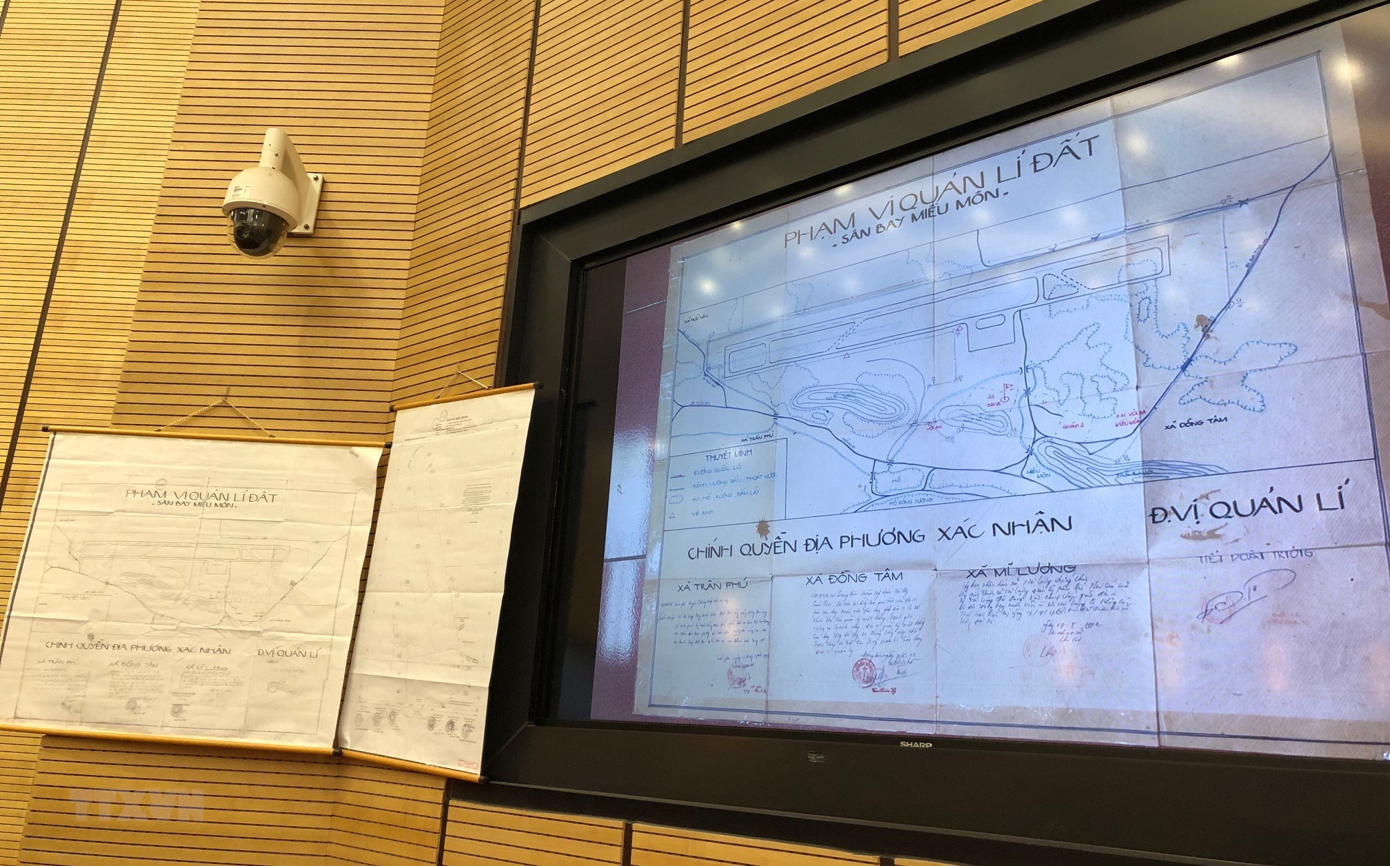 Bản đồ phạm vi quản lý đất sân bay Miếu Môn được công bố tại hội nghị chiều 27/8/2019. (Ảnh: Hoàng Dương/TTXVN)