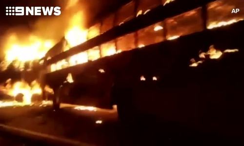 Old  Default Đâm vào xe tải, xe buýt chở hơn 40 người bốc cháy ngùn ngụt