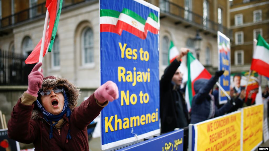 Người dân tuần hành ủng hộ các cuộc biểu tình chống chính phủ ở Iran bên ngoài Phố Downing Street ở London, Anh, hôm 13/1.