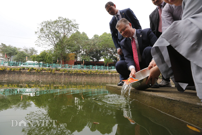 Sáng 16/1, Đại sứ Hoa Kỳ tại Việt Nam Daniel J. Kritenbrink đã đến chùa Kim Liên (Hà Nội) để thực hiện nghi lễ thả cá chép tiễn ông Công ông Táo về trời theo phong tục Việt Nam.