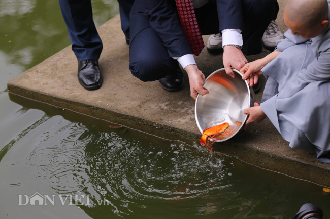Đại sứ Mỹ thả cá chép tiễn ông Táo chầu trời ở Hồ Tây. Ngài Daniel J. Kritenbrink đã tới thăm chùa Kim Liên và thả cá chép tiễn ông Táo về trời theo phong tục Việt Nam vào ngày 16/1.