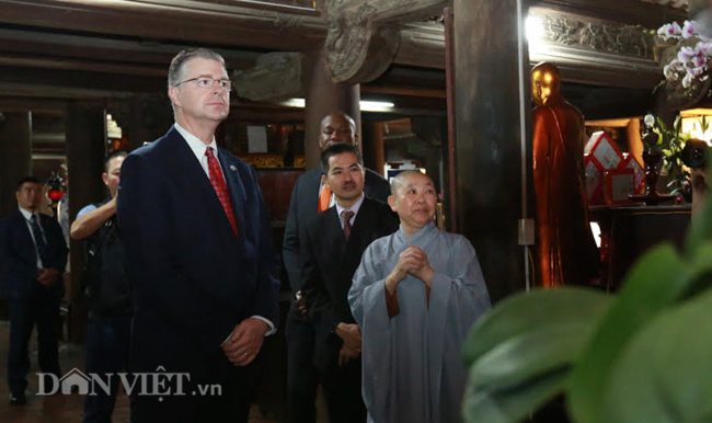 Cũng trong dịp này, Ngài Đại sứ Daniel Kritenbrink đã được đi tham quan một trong những ngôi chùa cổ kính và đẹp nhất Hà Nội.