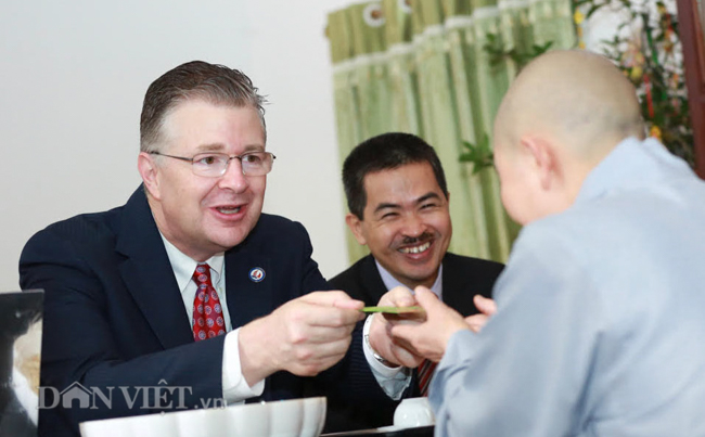 Thay mặt Đại sứ quán Hoa Kỳ tại Việt Nam, Ngài Daniel J. Kritenbrink đã 'lì xì' mừng năm mới cho ni sư Thích Đàm Thành.