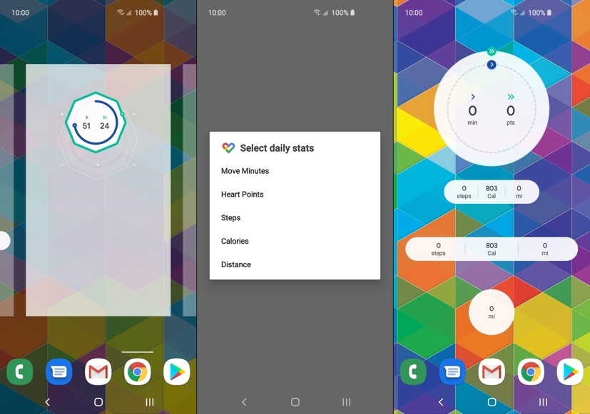 Google Fit cung cấp nhiều widget khác nhau để bạn xem các chỉ số thống kê và dữ liệu sức khỏe ngay trên màn hình chính.