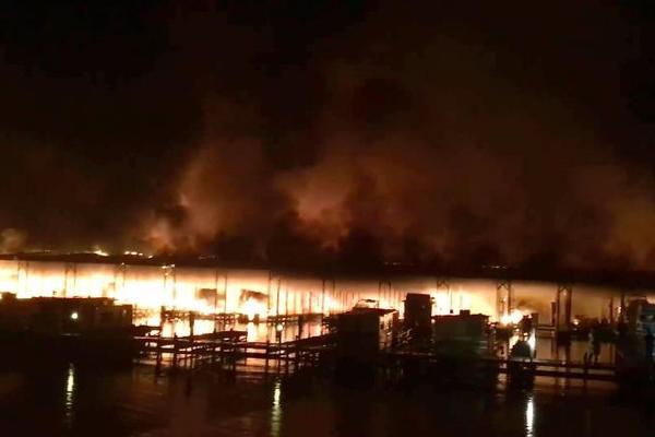 Bến thuyền cháy dữ dội. Ảnh: CNN/AP