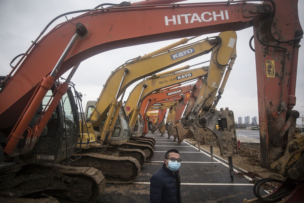 Một kỹ sư xây dựng bên cạnh những chiếc máy xúc tham gia xây dựng bệnh viện dã chiến số 2 với quy mô 1.300 giường, sẽ hoàn thành và đi vào hoạt động trong tuần tới. Ảnh: Getty.