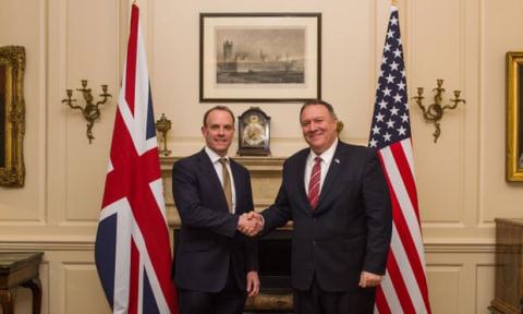Ngoại trưởng Mỹ Mike Pompeo gặp Ngoại trưởng Anh Dominic Raab tại London. Ảnh: AP