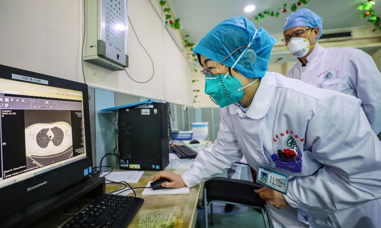 Bác sĩ xem ảnh chụp CT phổi của bệnh nhân tại một bệnh viện ở Vũ Hán, tỉnh Hồ Bắc, Trung Quốc hôm 30/1. Ảnh: AFP.
