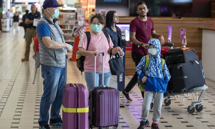 Hành khách đeo khẩu trang ở sân bay quốc tế Brisbane, Australia hôm 31/1. Ảnh: Strait Times.