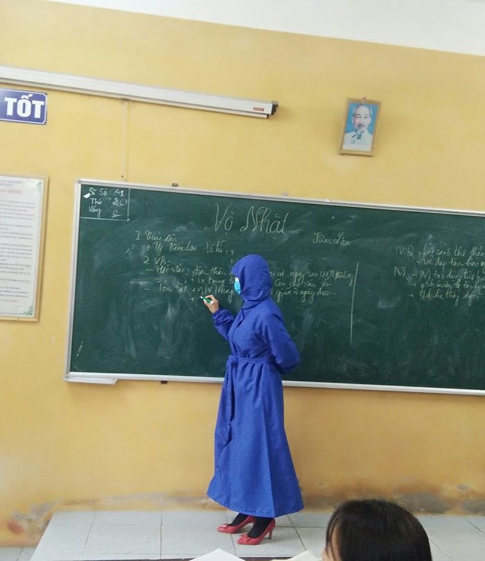 HÌnh ảnh cô giáo lên lớp trong tình trạng bịt kín mít từ đầu tới chân khiến ai cũng phải ngỡ ngàng. Đây là cách phòng chống dịch cúm corona mà theo cô giáo là an toàn nhất. Dưới đây là những thông tin cụ thể. Để đảm bảo an toàn cho học sinh cũng như bản thân, một cô giáo đến từ Nam Định đã “hóa thân” thành ninja khi lên lớp giảng bài khiến cư dân mạng vô cùng thích thú.Dưới sự bùng phát mạnh mẽ của dịch viêm phổi cấp do virus Corona gây ra, nhiều trường học, cơ sở giáo dục đã quyết định cho học sinh, sinh viên nghỉ học để phòng bệnh. Thế nhưng vẫn có nhiều địa phương quyết định để học sinh đến lớp bình thường, điều này khiến các bạn trẻ không khỏi “tủi thân” so với các bạn bè ở những khu vực khác.