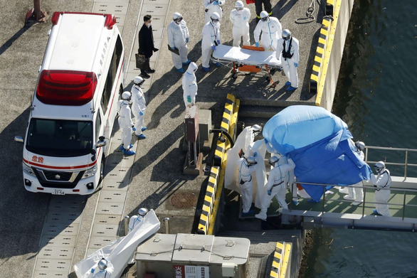 Đưa người bị nhiễm virus corona trên du thuyền Diamond Princess vào bờ - Ảnh: AFP