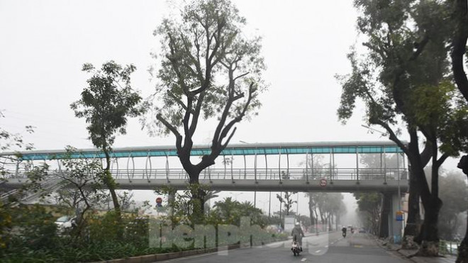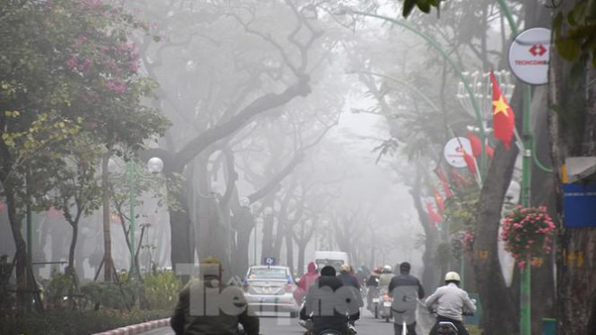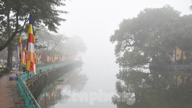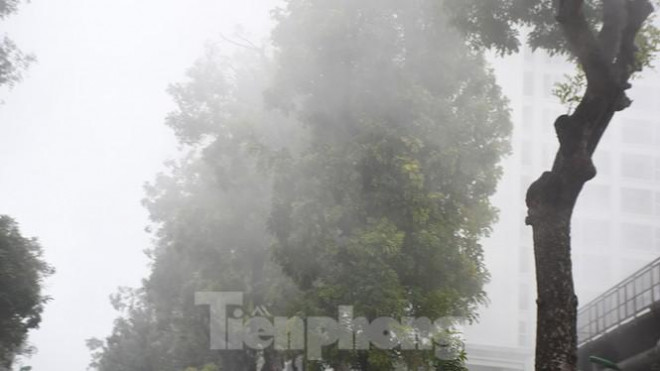 Ngay từ sáng sớm, Thủ đô Hà Nội được bao bọc bởi lớp sương mù dày đặc.