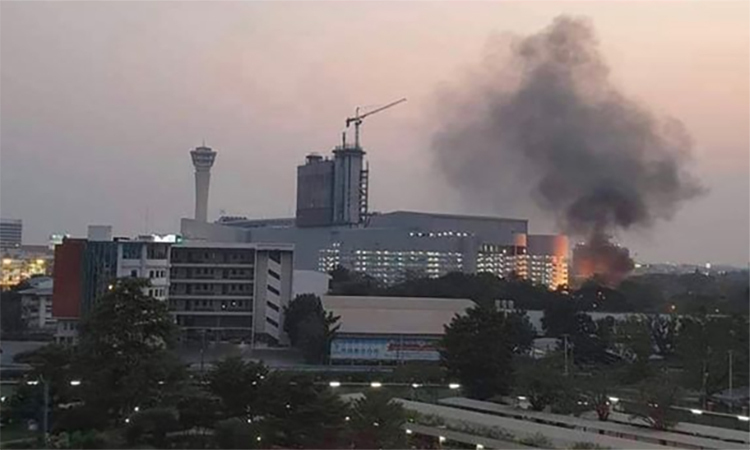 Khói bốc lên từ trung tâm thương mại tại thành phố Nakhon Ratchasima, Thái Lan chiều 8/2. Ảnh: Thairath.