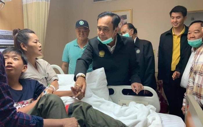 Thủ tướng Thái Lan Prayut Chan-ocha thăm các nạn nhân vụ xả súng. Ảnh: Gov Hause.