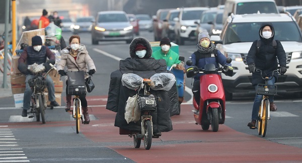 Công nhân và người lao động Bắc Kinh trên đường đi làm sáng 10/2. Ảnh: Reuters