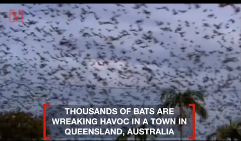 Hàng trăm nghìn con dơi che bầu trời thị trấn Úc, người dân không dám rời nhà. Đây là một thị trấn thuộc bang Queensland, Úc.