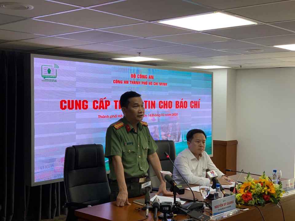 Chủ trì buổi họp báo là đại tá Nguyễn Sỹ Quang - Phó giám đốc Công an TP.HCM và ông Từ Lương - Phó Giám Sở Thông tin - Truyền thông TP.HCM.