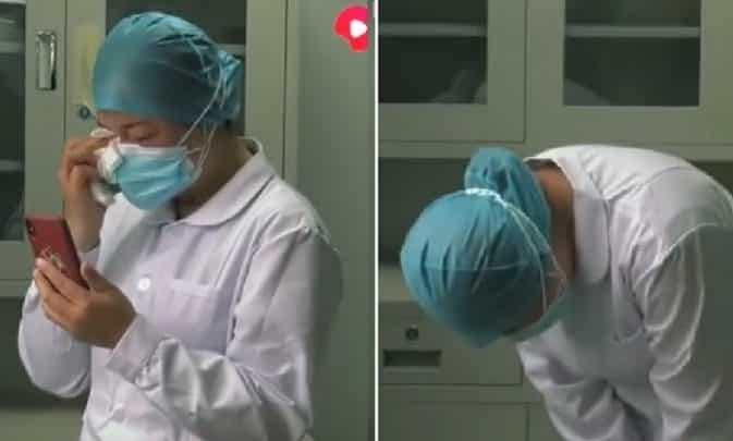 Nữ y tá Vũ Hán đau đớn khi nghe tin mẹ qua đời (ảnh từ clip)