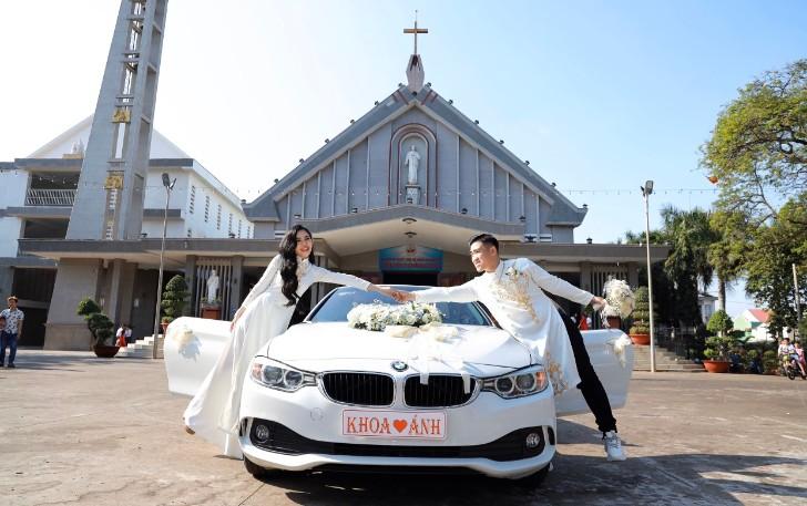 Đám cưới Đăng Khoa - Ngọc Ánh có sự góp mặt của diễn viên Kinh Quốc và chuyên gia trang điểm Eric Vũ, rước dâu bằng xe mui trần và dàn mô tô.