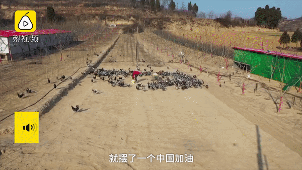 Một anh nông dân dã cô gắng xếp 1000 con gà thành chữ "Trung Quốc cố lên" để động viên với người dân của mình ngay giữa dịch virus Covid-19, ngoài ra anh nông dân này còn quyên góp 3000 quả trứng cho những nhân viên y tế trực chiến ở tuyến đầu.