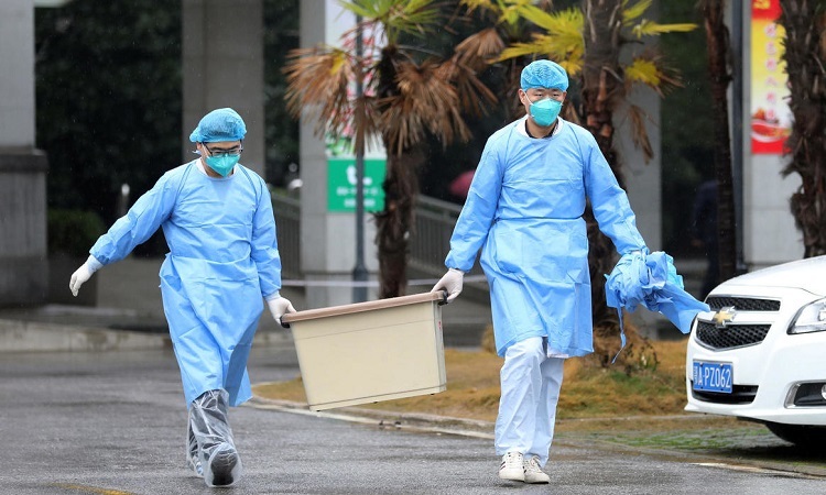 Nhân viên y tế Trung Quốc gần bệnh viện Kim Ngân Đàn ở Vũ Hán hôm 10/1. Ảnh: Reuters.