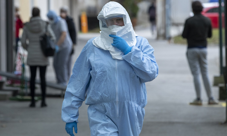 Nhân viên y tế mặc đồ bảo hộ tại một bệnh viện ở Zagreb, Croatia hôm 25/2. Ảnh: AP.
