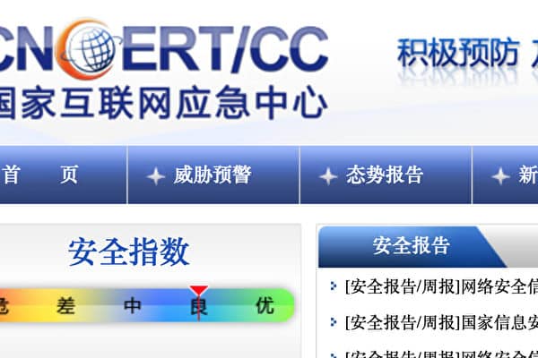 Website của Trung tâm Ứng phó Khẩn cấp Internet Quốc gia của Đảng Cộng sản Trung Quốc