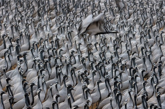 Loài sếu không có khả năng phòng vệ. Cách duy nhất chúng có thể dùng để tránh nguy hiểm là trốn thoát. Chính vì vậy, việc tập trung thành đàn sẽ khiến chúng được an toàn hơn do có thể nhanh chóng báo cho nhau về nguy hiểm đang tới gần.