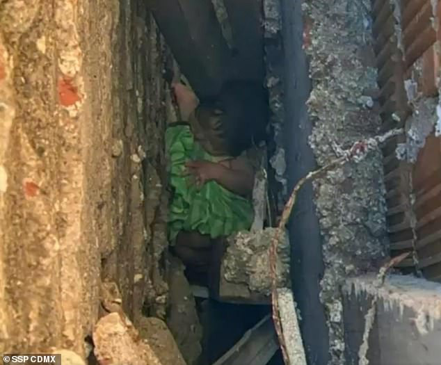 Nhân viên cứu hộ tìm cách đưa đứa bé ra khỏi hố. Ảnh: ERUM CDMX