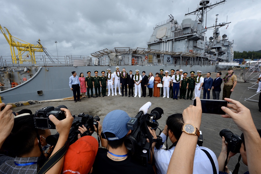 “Chuyến thăm này không chỉ củng cố quan hệ quốc phòng song phương, mà còn giúp thắt chặt quan hệ chuyên môn và văn hóa giữa chúng ta”, Đại tá Brett Crozier, chỉ huy của tàu USS Theodore Roosevelt, nói. “Chúng tôi vinh dự được tham gia chuyến thăm cảng rất quan trọng này và nhận được sự chào đón nồng ấm”. Ảnh: Thuận Thắng