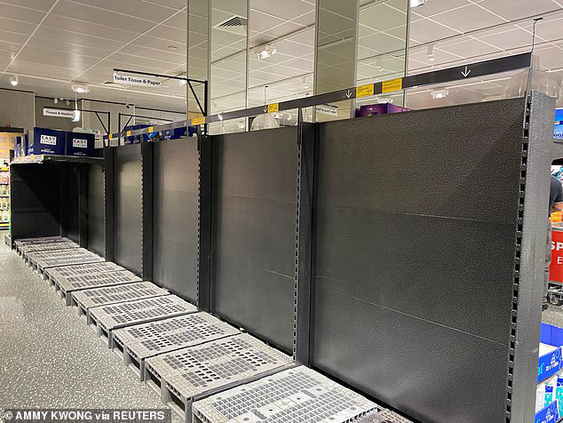Giấy vệ sinh hết sạch trên kệ của một cửa hàng tại Úc. Ảnh: Facebook