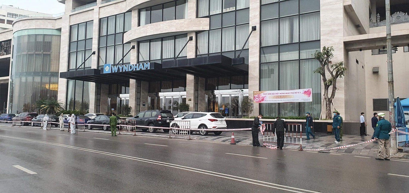 Chính quyền Quảng Ninh phong toả toàn bộ khách sạn Wyndham Hạ Long, phường Bãi Cháy, TP.Hạ Long. 46 Người nước ngoài, 4 người Việt và 2 người Anh gốc Việt từng đi cùng chuyến bay với bệnh nhân nhiễm virus Corona thứ 17. Hiện có 1 cặp vợ chồng người Anh đang nghỉ tại khách sạn Wyndham Hạ Long.
