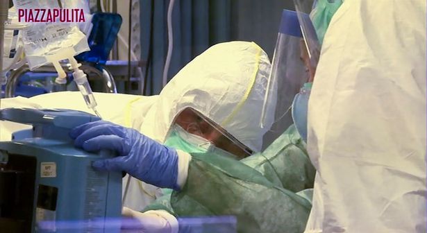 Sau đây là hình ảnh bên trong phòng bệnh đặc biệt dành cho các bệnh nhân nhiễm Covid-19 biến chứng nặng ở Ý cho thấy. Trong đó các bác sĩ mặc bộ đồ bảo hộ kín mít nỗ lực chiến đấu để cứu các bệnh nhân nằm trên giường. Trên người bệnh nhân cắm chằng chịt các máy hỗ trợ sự sống.