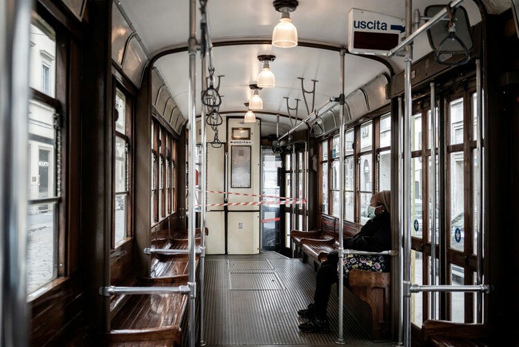 Tàu điện vắng khách ở Milan. Ảnh: NYTimes.