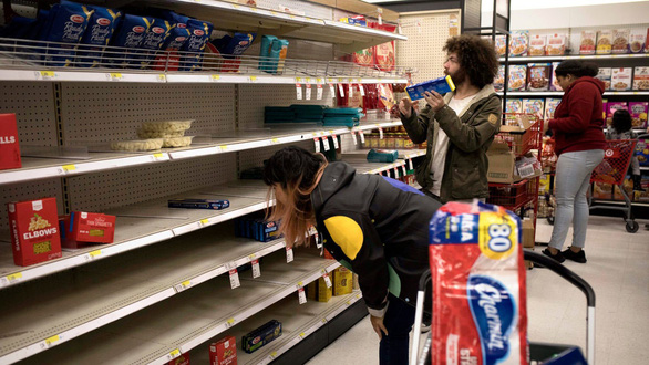 Người Mỹ cũng vét sạch mì ăn liền, dung dịch khử trùng, giấy vệ sinh...
