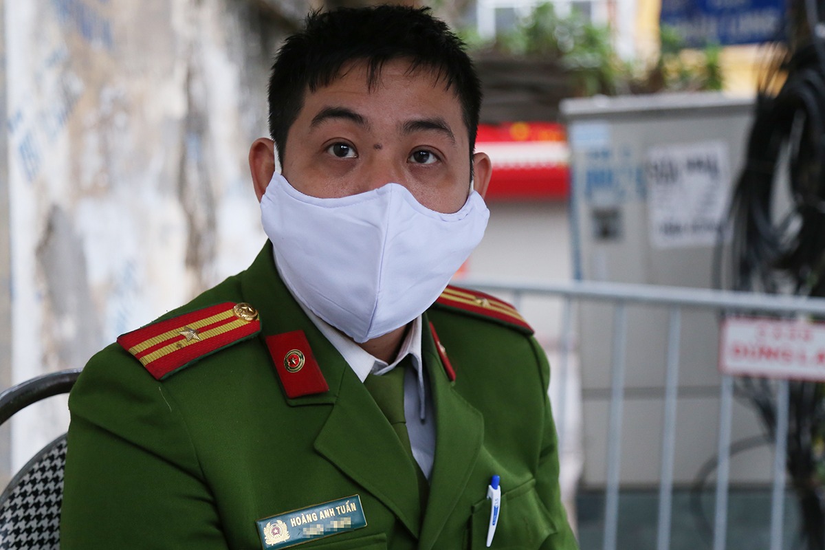 Đó là cách cảnh sát khu vực phường Trúc Bạch, quận Ba Đình giám sát cách ly tại nhà gia đình 4 người do liên quan "bệnh nhân 20". Cùng với ba lần kiểm tra đột xuất của anh Tuấn, y tế phường cũng đến đo thân nhiệt hai lần trong ngày. Quy trình lặp lại trong 14 ngày. Xong việc, anh Tuấn trở về chốt cách ly ở đầu phố Trúc Bạch giao với phố Châu Long tiếp tục công việc trực ban.