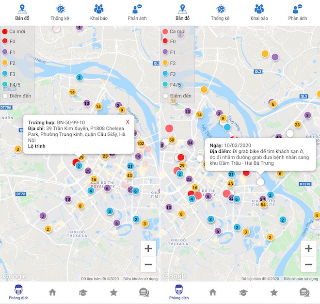 Old  Default Phần mềm hiển thị vị trí người nhiễm và người bị cách ly vì Covid-19 tại Hà Nội