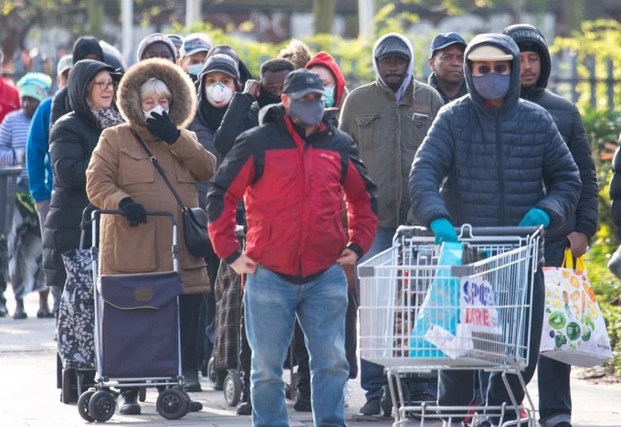 Dù trời chưa sáng, nhiều người đã chờ bên ngoài siêu thị, với hy vọng mua đủ nhu yếu phẩm cho gia đình, khi Covid-19 đang lây lan nhanh ở Anh.