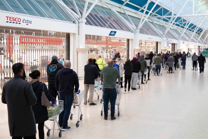 Tình trạng hoảng loạn mua sắm đã diễn ra tại nhiều siêu thị trên khắp nước Anh tuần này, khiến nhiều kệ hàng "bốc hơi" chỉ trong một thời gian ngắn. Tesco ngày 20/3 cho biết sẽ phải thuê thêm 20.000 nhân viên để tránh rơi vào tình trạng quá tải khi nhu cầu mua sắm của người dân tăng cao.