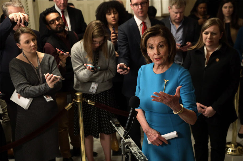 Chủ Tịch Hạ Viện Nancy Pelosi (Dân Chủ-California) họp báo tại Hạ Viện. (Hình: Alex Wong/Getty Images)