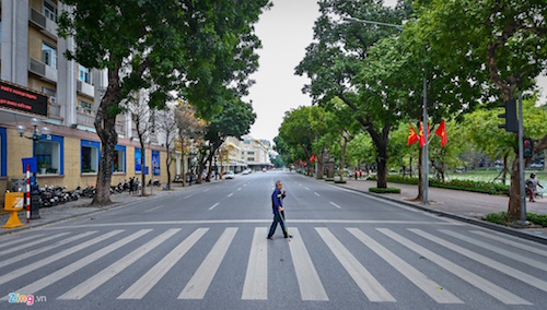 Chính quyền Hà Nội áp dụng biện pháp mạnh cấm tụ tập đông người. Tất cả các hàng quán, dịch vụ vui chơi giải trí phải đóng cửa. Giờ đường phố Hà Nội vắng tanh không bóng người.