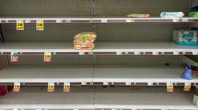 Các kệ hàng trống trơn tại các siêu thị của Mỹ trong tình hình đại dịch Covid-19 ngày càng trầm trọng