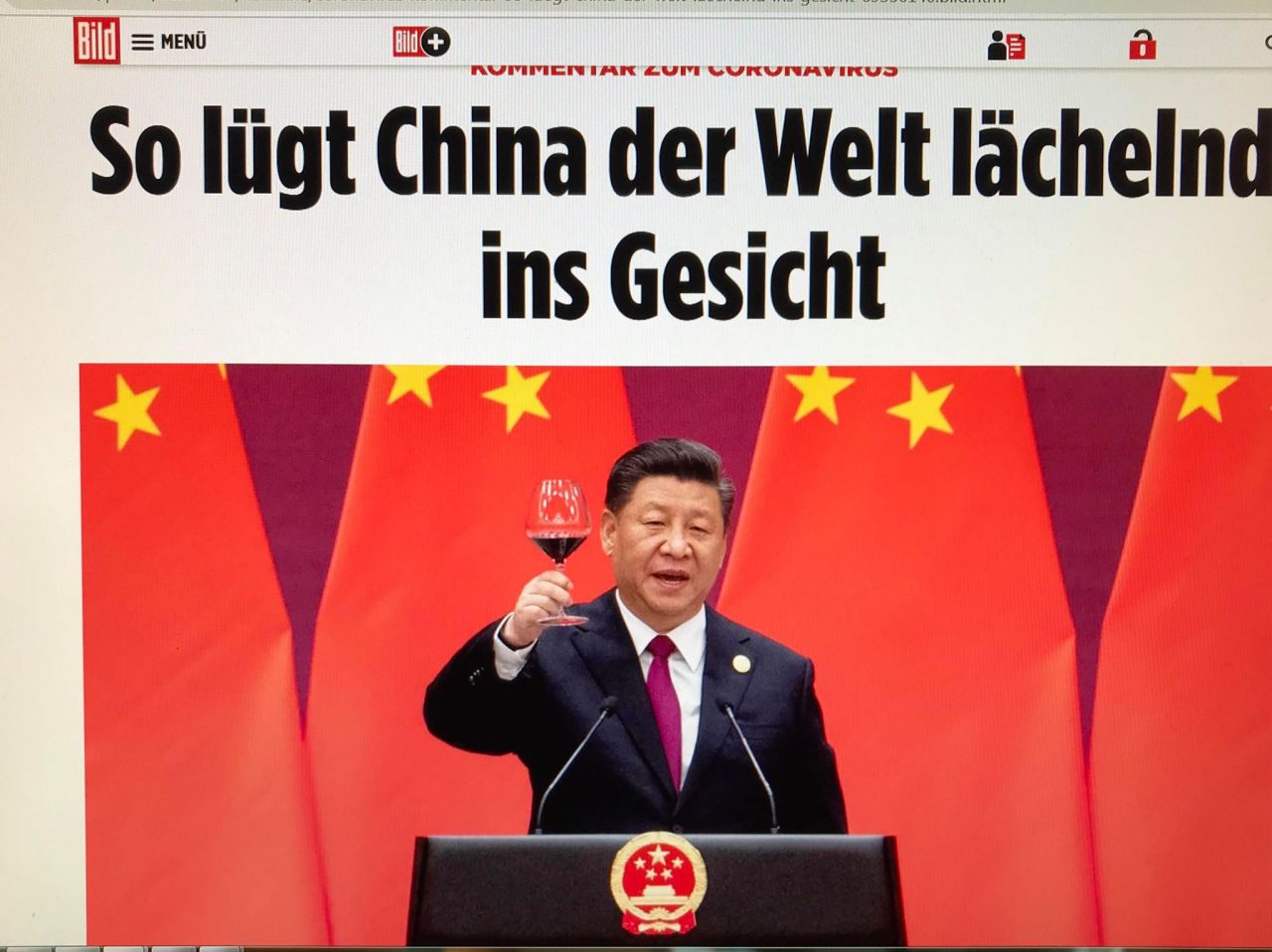 Bây giờ Bắc Kinh tuyên bố rằng Corona không đến từ Trung Quốc, mà đến từ nước ngoài. Trung Quốc vẫn sống theo cách đó và dối trá… Điều cay đắng là: Trong nhiều tuần, Đức chẳng làm gì khi thấy Trung Quốc ngụy trang con coronavirus của họ, không có biện pháp cản trở người dân Trung Quốc vui vẻ du lịch đến đất nước chúng ta. Thậm chí vỗ tay khen thời gian xây dựng kỷ lục một trong những bệnh viện dã chiến.