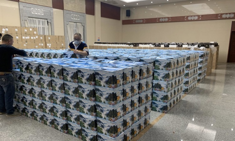 Hàng nghìn thùng đựng lọ tro cốt tại một nhà tang lễ ở Vũ Hán hôm 26/3. Ảnh:Caixin