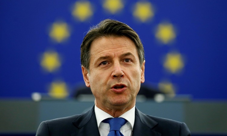 Thủ tướng Italy Giuseppe Conte phát biểu trước Nghị viện châu Âu hồi tháng hai năm ngoái. Ảnh: Reuters.
