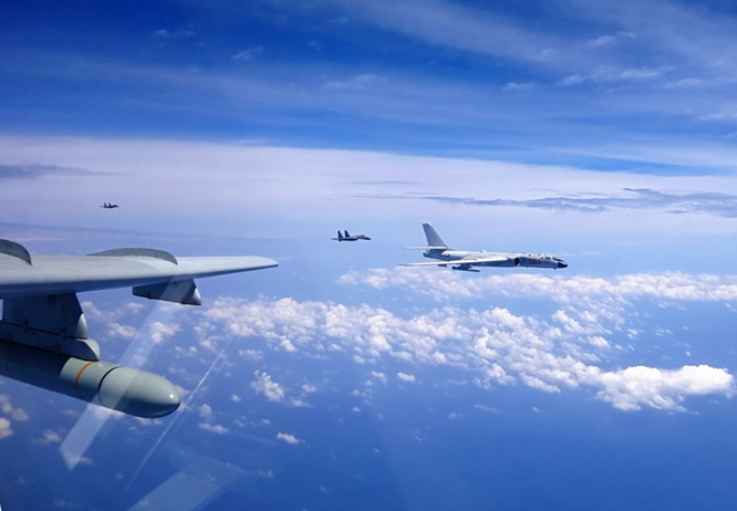 Máy bay H-6 và J-11 của Trung Quốc bay ṿng qua đảo Đài Loan (Ảnh: DF).