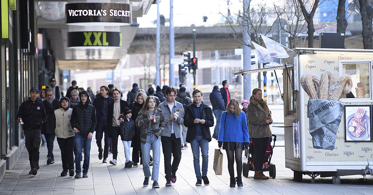Đường phố đông đúc tại Thụy Điển, rất ít người đeo khẩu trang (ảnh: Daily Mail)
