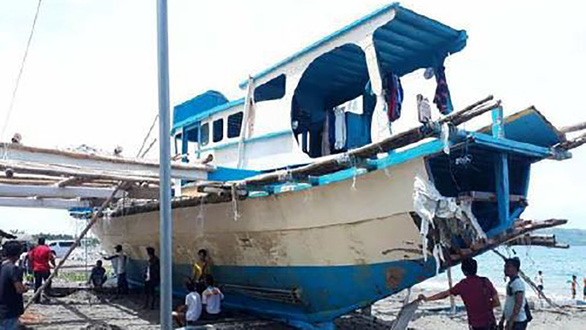 Tàu cá Philippines bị tàu Trung Quốc đâm chìm tại bãi Cỏ Rong ngoài khơi Philippines hồi tháng 6-2019, buộc 22 ngư dân phải nhảy xuống biển thoát thân - Ảnh: Cảnh sát biển Philippines