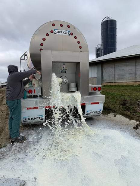 Lượng tiêu thụ từ nhà hàng giảm mạnh và lệnh không rời nhà khiến nhiều người không đi chợ mua sữa tươi và những nông sản thường xuyên như mọi khi khiến nhiều nông trại quá tải và phải đổ bỏ. Một nông trại ở Milwaukee mỗi ngày phải đổ bỏ 25,000 galllon (tương đương 1 triệu lít) sữa tươi.